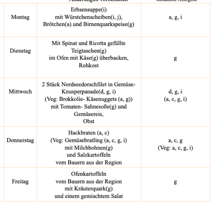 Die Zelle mit dem „Speiseplan von …“ bekommt die Hintergrundfarbe orange.