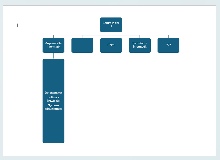Suche nach Berufen in der IT und ordne Sie den Berufsfeldern zu. Dazu kannst du auch wieder chatGTP befragen.