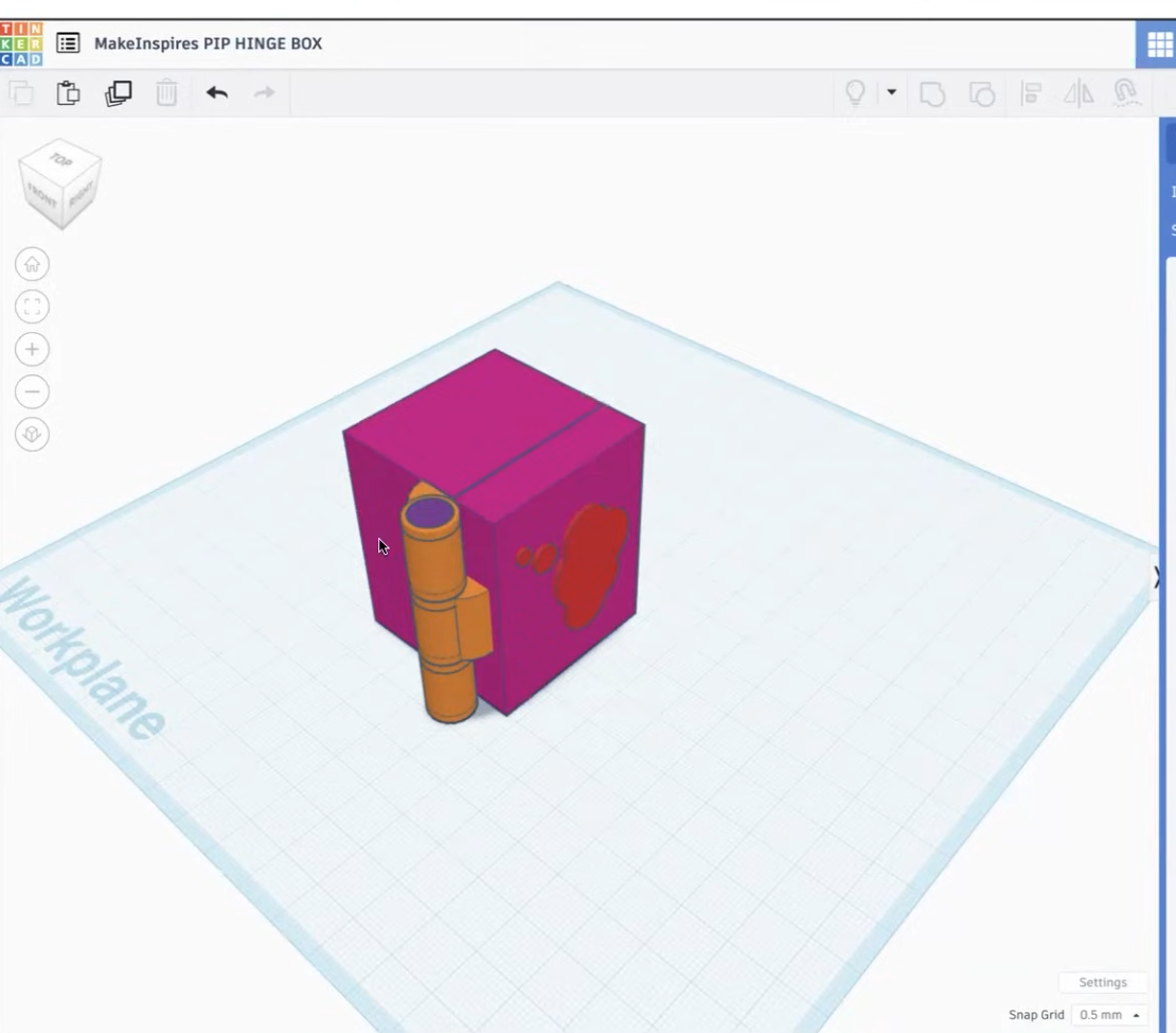 - Wichtig: Der Zylinder muss exakt auf derselben Höhe und derselben Achse liegen wie die Löcher im Körper. Nutzen Sie die Ausrichten-Funktion von Tinkercad!