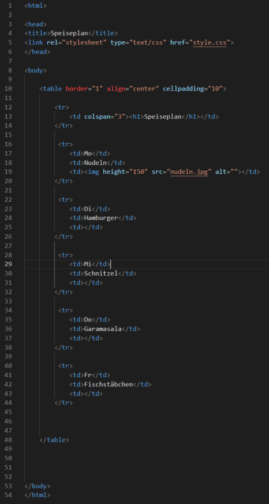 • Zellen verbinden – colspan